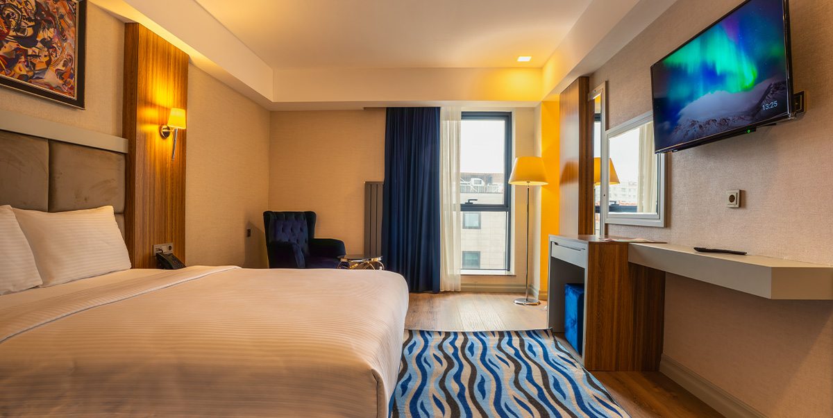 Standing out with their modern design and comfortable details, the 25 m² Trendy Rooms with queen size beds offer guests a unique experience whether you are staying for business or leisure.