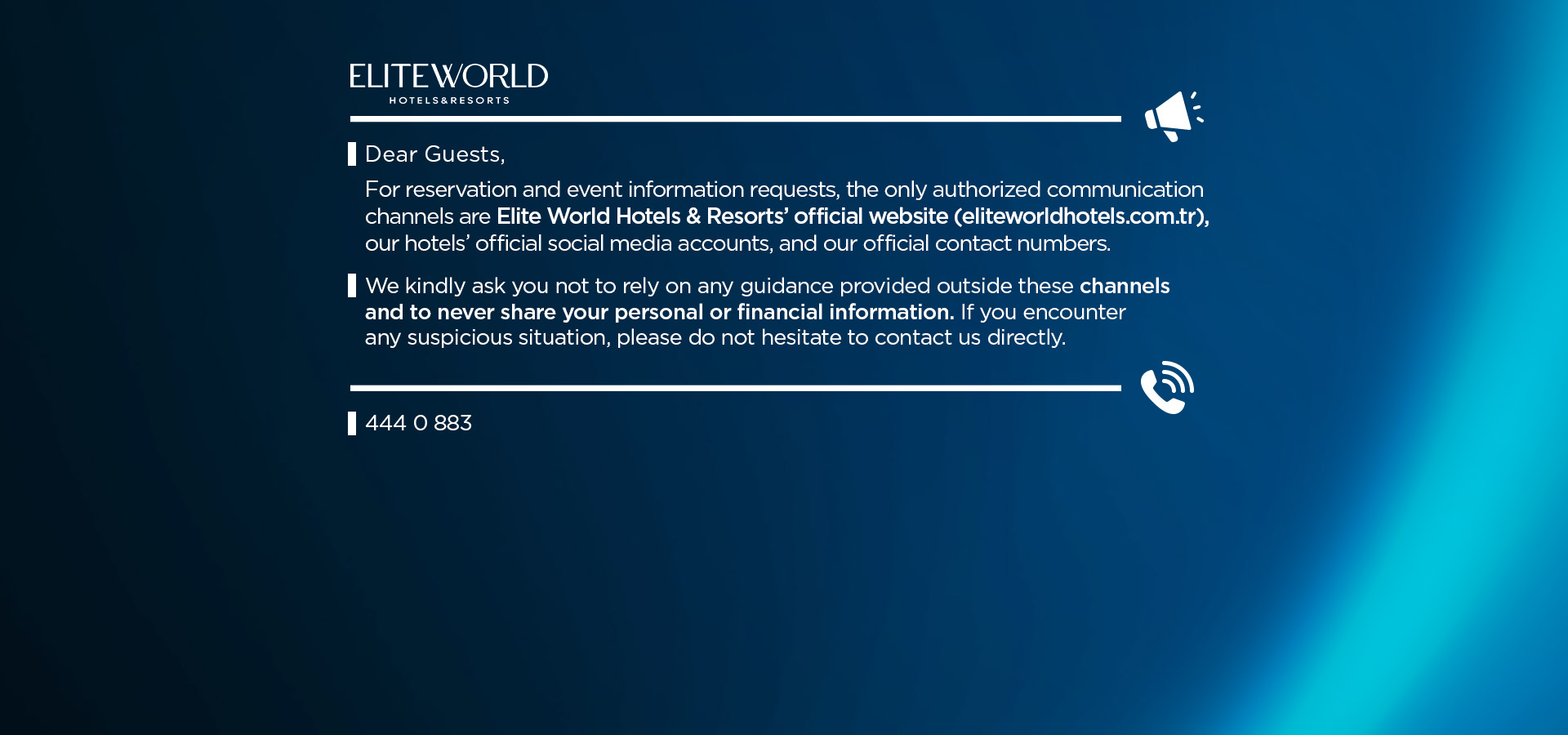 You can reach the rich content blog posts from the privileged world of Elite World Hotels & Resorts with one click.