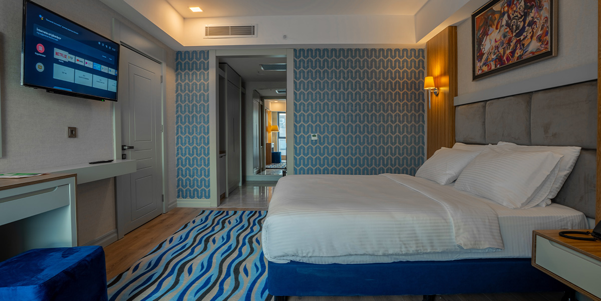 70 m² genişliğe sahip Süit Odalarımız, zarif tasarımı ve ferah yaşam alanlarıyla üst düzey bir konfor sunuyor. Büyük yataklı yapısıyla maksimum 2 kişi için ideal olan odalar, Diyarbakır’da hem iş hem de tatil amaçlı konaklamalarda ayrıcalıklı bir deneyim yaşatıyor.