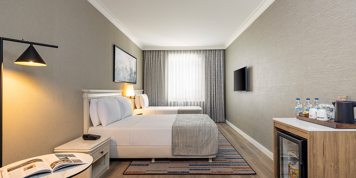 Elite World Comfy İstanbul Taksim Hotel’in Trendy Oda, Büyük Yataklı ve Tek Kişilik Yataklı odalarında konforlu konaklama deneyimi sizi bekliyor. İstanbul’un kültür, sanat, eğlence ve alışveriş merkezlerine ev sahipliği yapan Taksim’de konaklamanın keyfini yaşarken, tüm detayların sizin için düşünüldüğü Üç Kişilik odalarda günün yorgunluğuna veda edin.