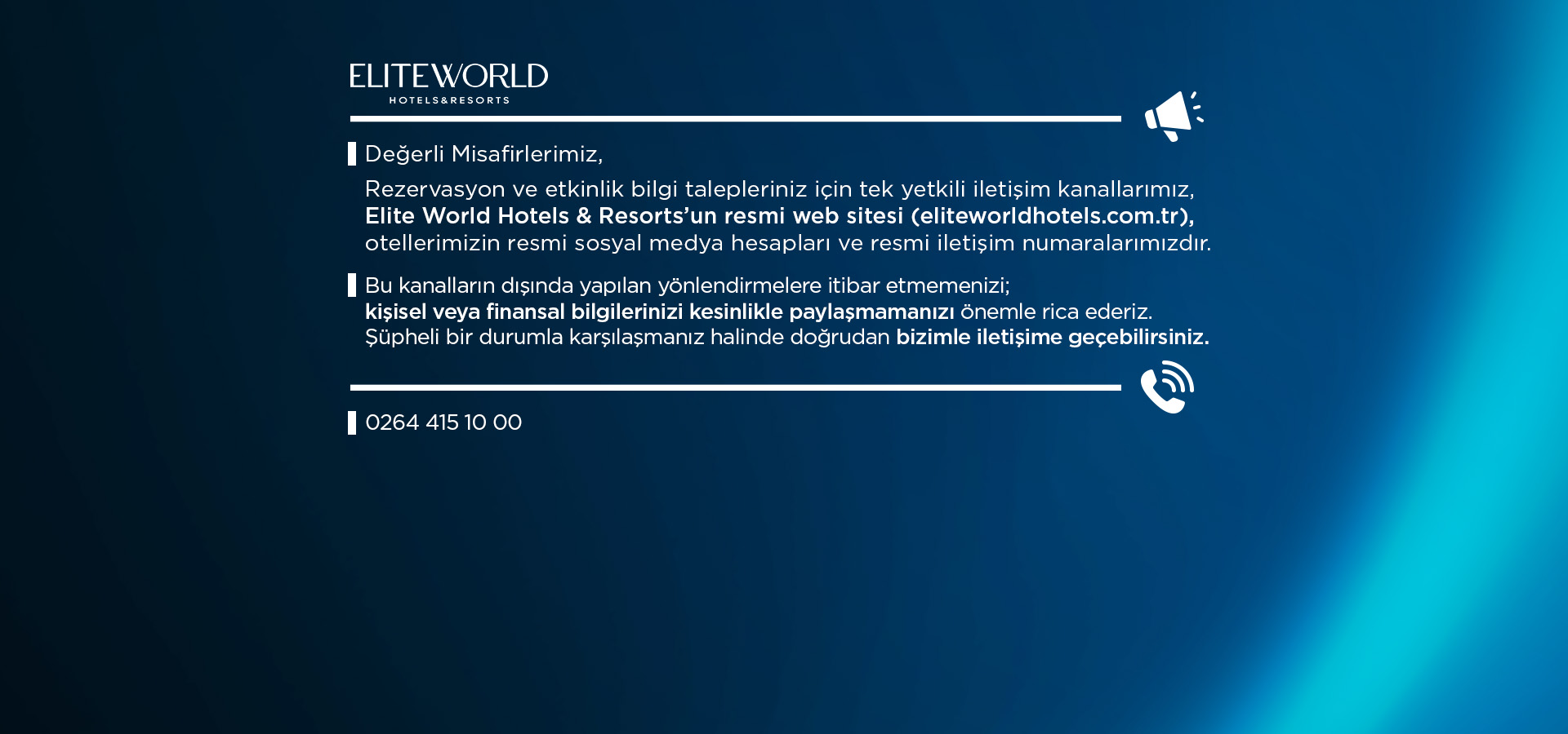 Konfor, şıklık ve misafirperverliği bir arada sunan Elite World Hotels & Resorts’un ayrıcalıklı dünyasından yeni haberlere ve zengin içerikli blog yazılarına bir tıkla ulaşabilirsiniz.