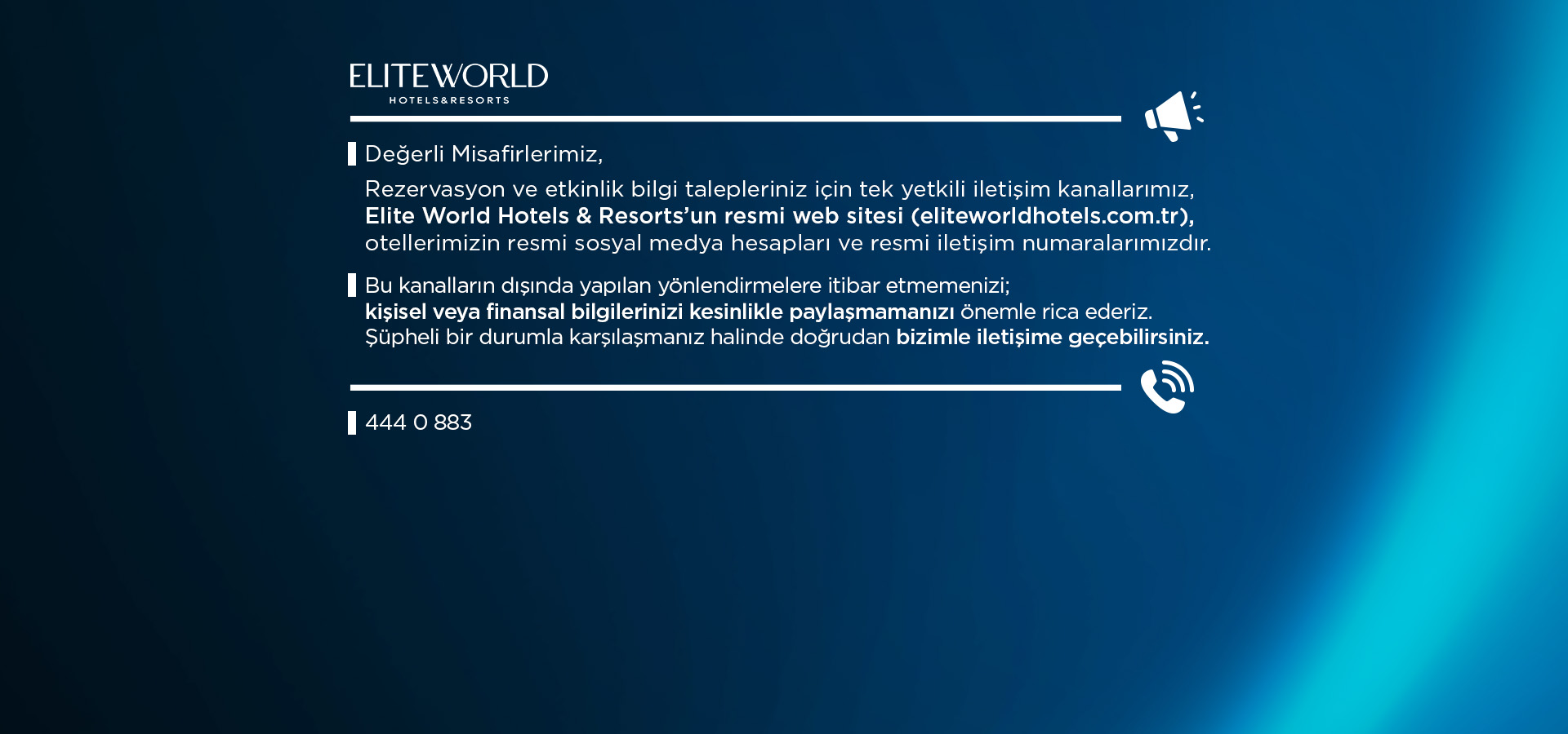 KEŞFET1 Ocak – 17 Mart 2026 tarihleri arasında Elite World Hotels & Resorts’ta yapacağınız konaklamalarda Elite World Club üyelerine özel 1.000 Mil fırsatı!